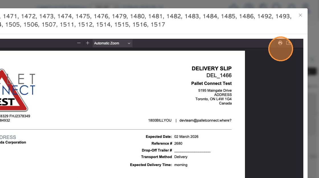 10. The delivery slips can also be printed by clicking on the print icon.