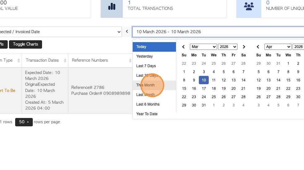 6. Alternatively, click this checkbox at the top of the list to select ALL transactions in the report.