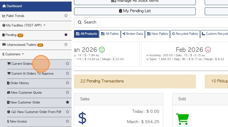 3. Click "Current Orders"
