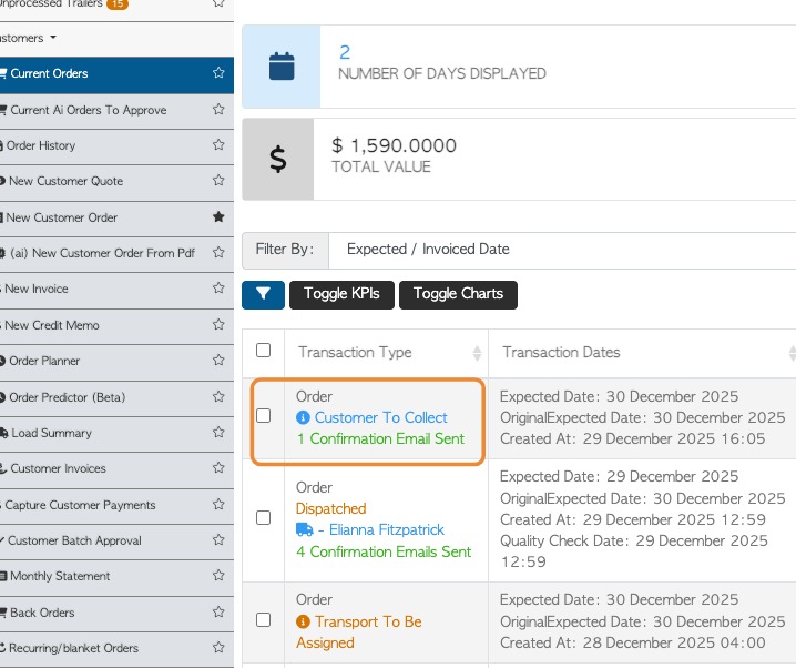 2. Once the Customer Order collection has been created the email sequence starts.
