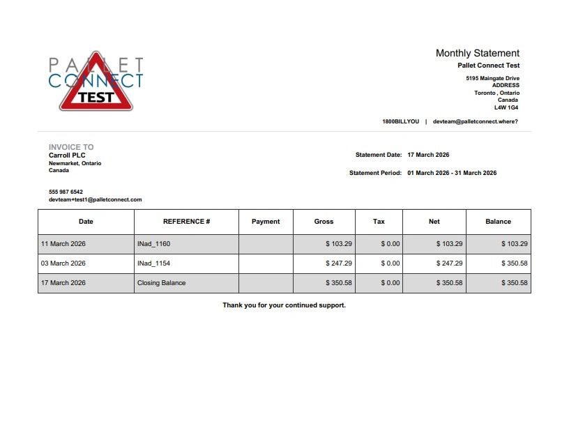 10. The Monthly Statement will show a list of invoices and the current Closing Balance.