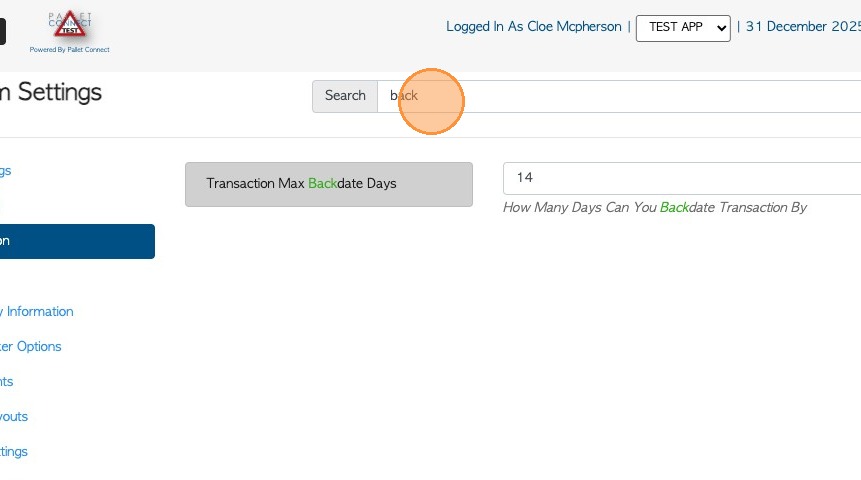 1. Transactions in Pallet Connect can be backdated and the number of days can be customized in the system.