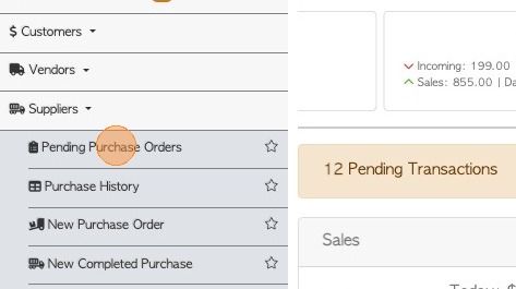2. 1. From the Main Menu, go to Suppliers > Pending Purchase Orders.