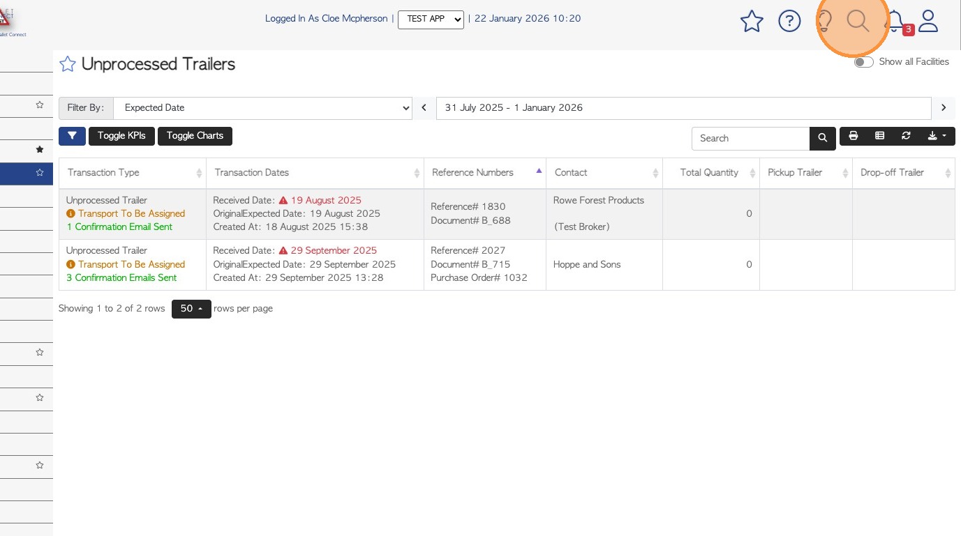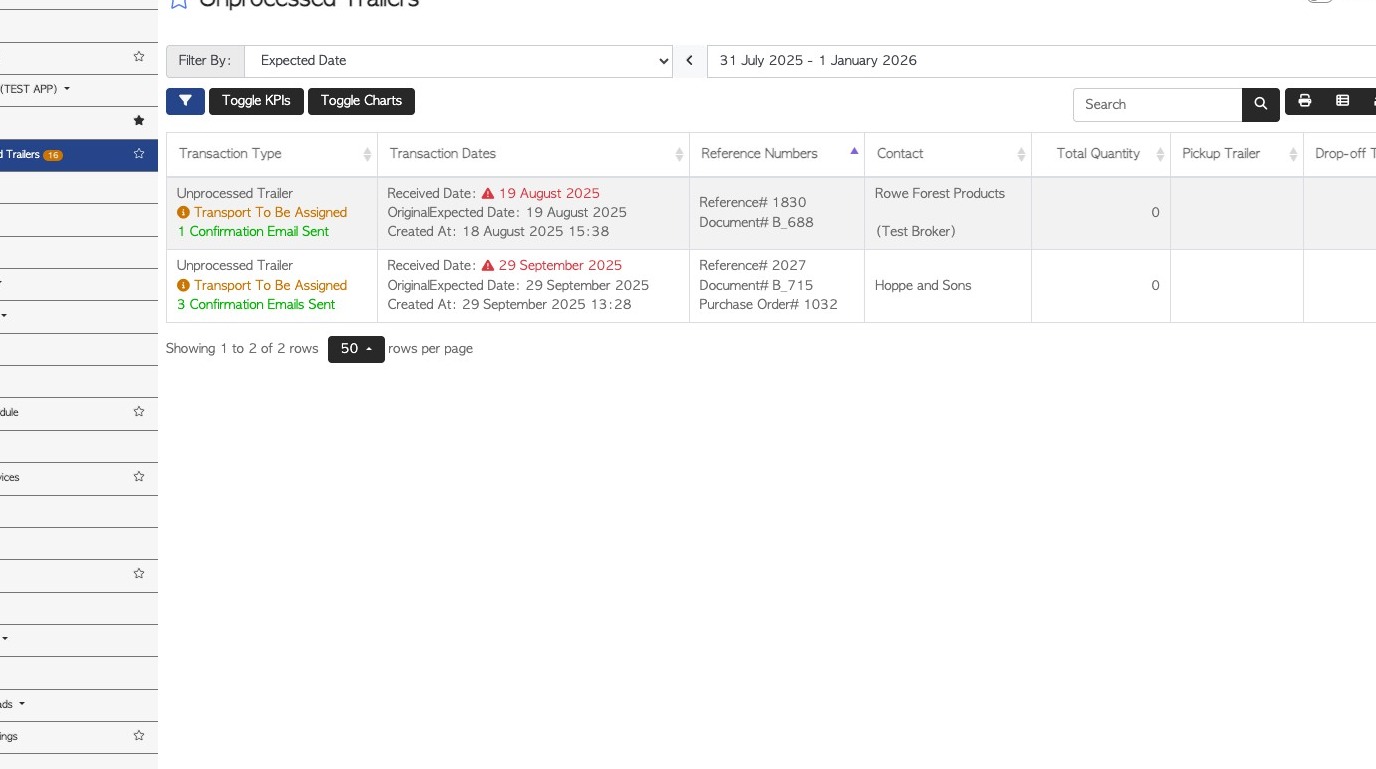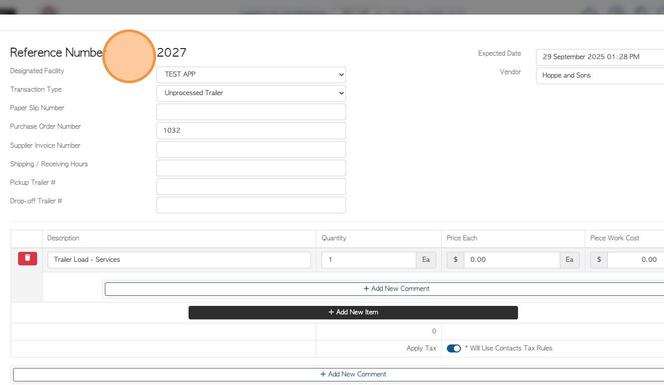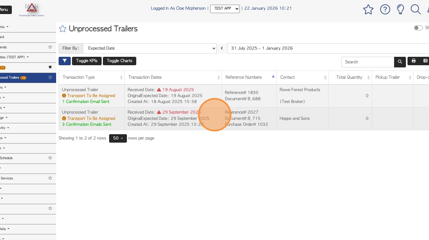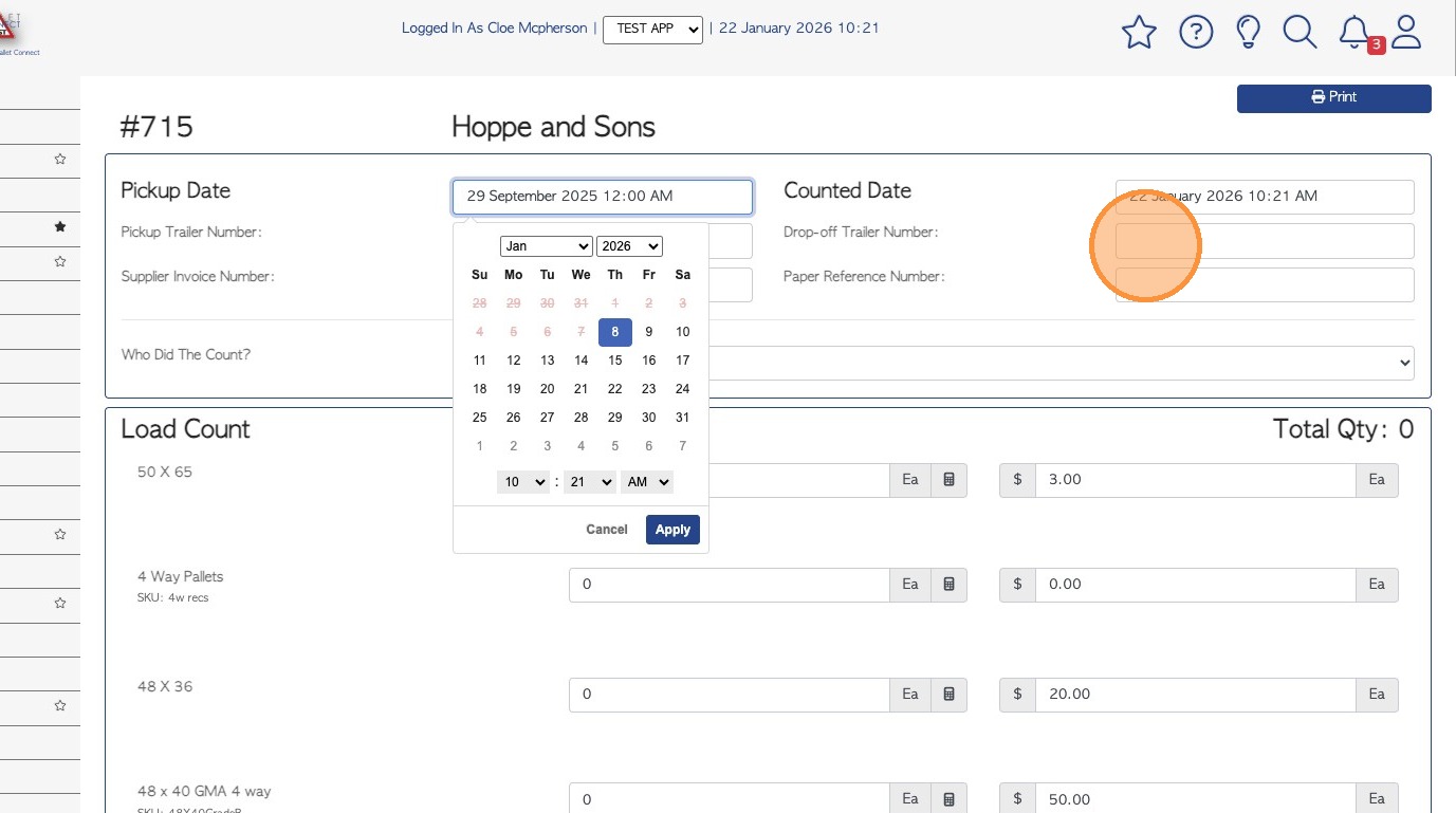 9. As well as adding the count, various edits can be made e.g change trailer number, change count date or pick up date.