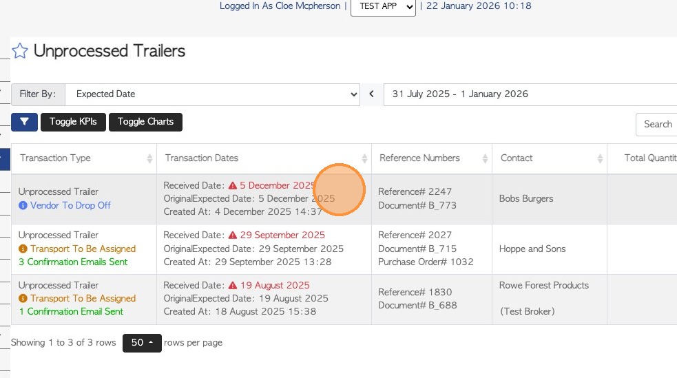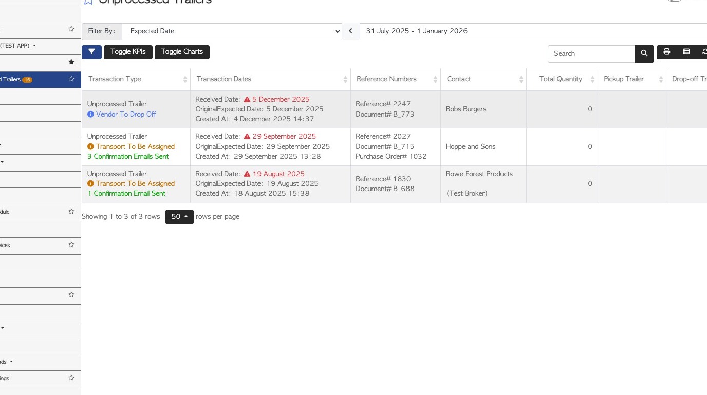 5. Click on the result to reach the Unprocessed Trailer transaction page.