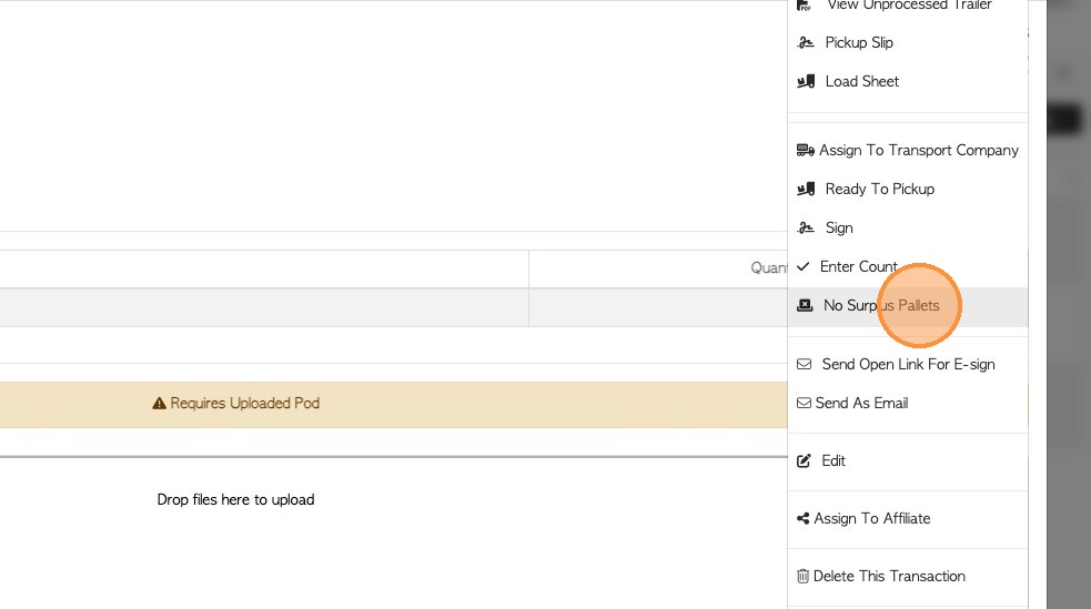 9. Select the "No Pallets" option. The Unprocessed Trailer will become a Rebate with no line/stock items.