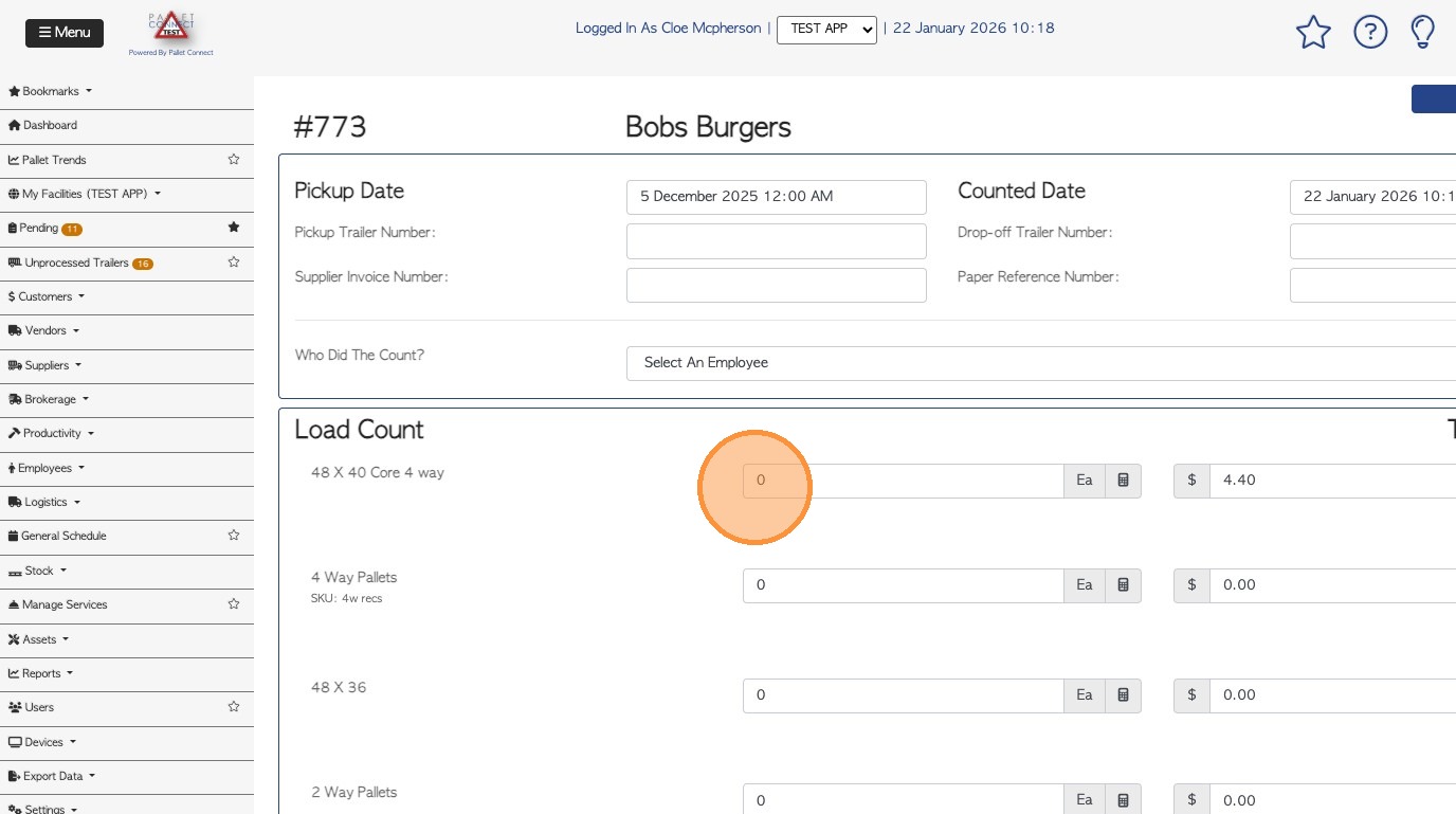 3. Once a Vendor Request has been turned into an Unprocessed Trailer in the system, it requires a count sheet to be completed and produce a rebate. The count sheet will only save if an item is added and will not allow zero pallets to be recorded.