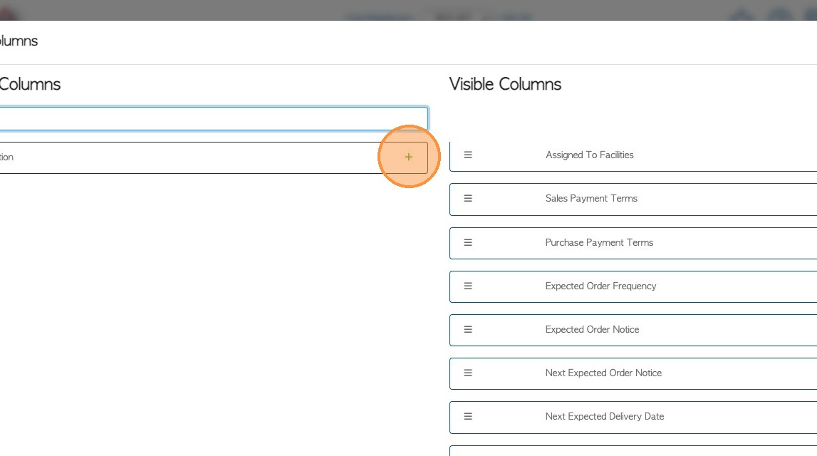 5. Click "+" icon to add "First Transaction" to Visible Columns.