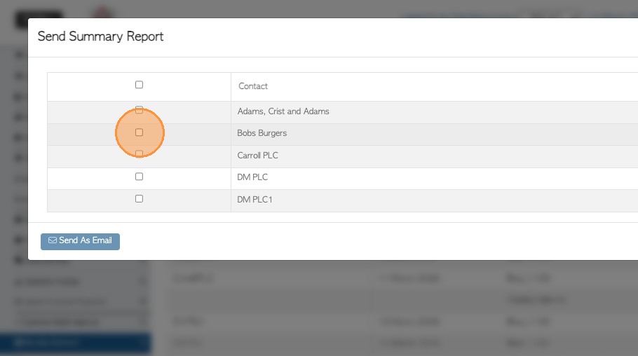 7. 7. Select the customer to contact and use SEND AS EMAIL action button to complete.