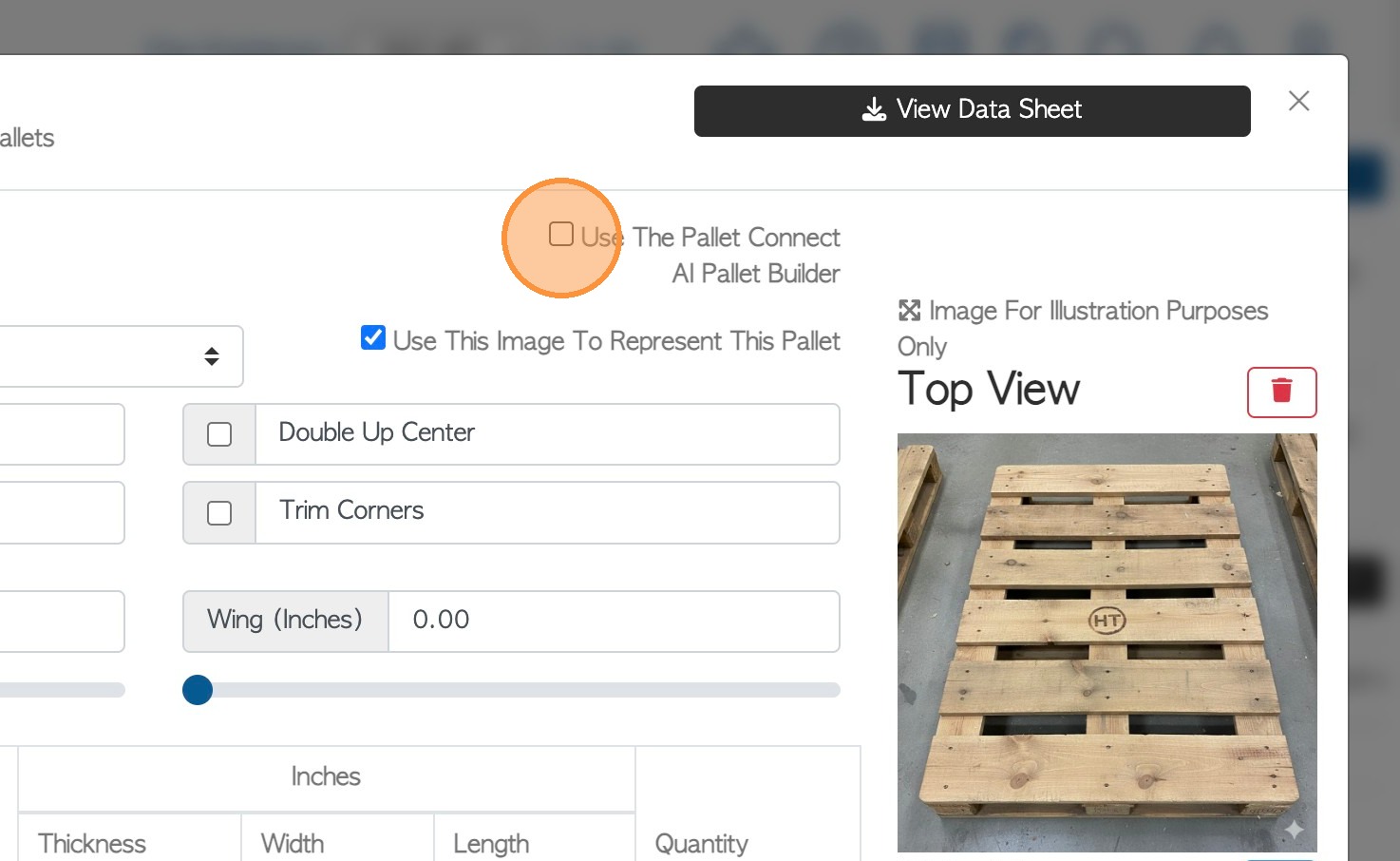 13. Click the "Use The Pallet Connect AI Pallet Builder" field.