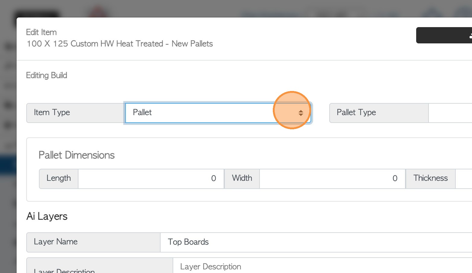 14. Click this dropdown to enter the item type e.g. Pallet.