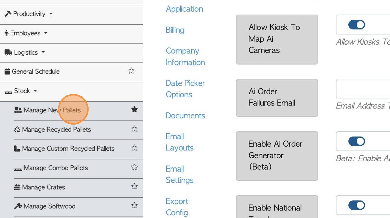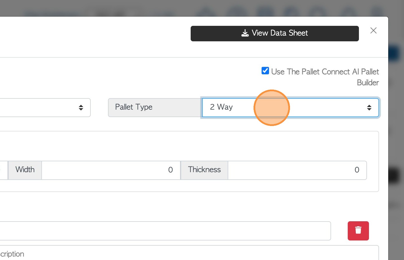 15. Click the dropdown menu to enter the Pallet Type. For example "2 Way", "4 way" or "block".