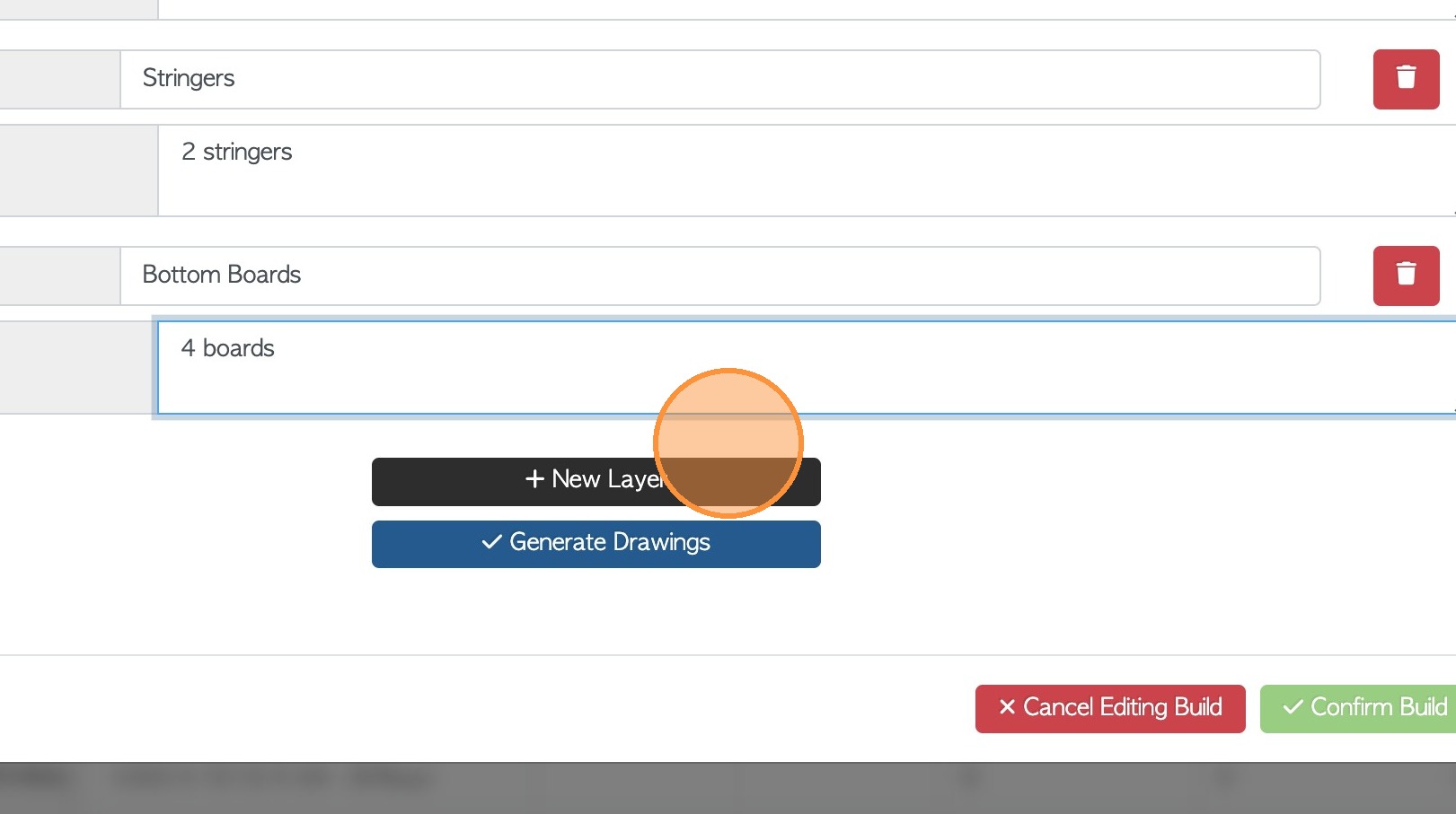 21. Click the next "Layer Description" field e.g. bottom boards.
