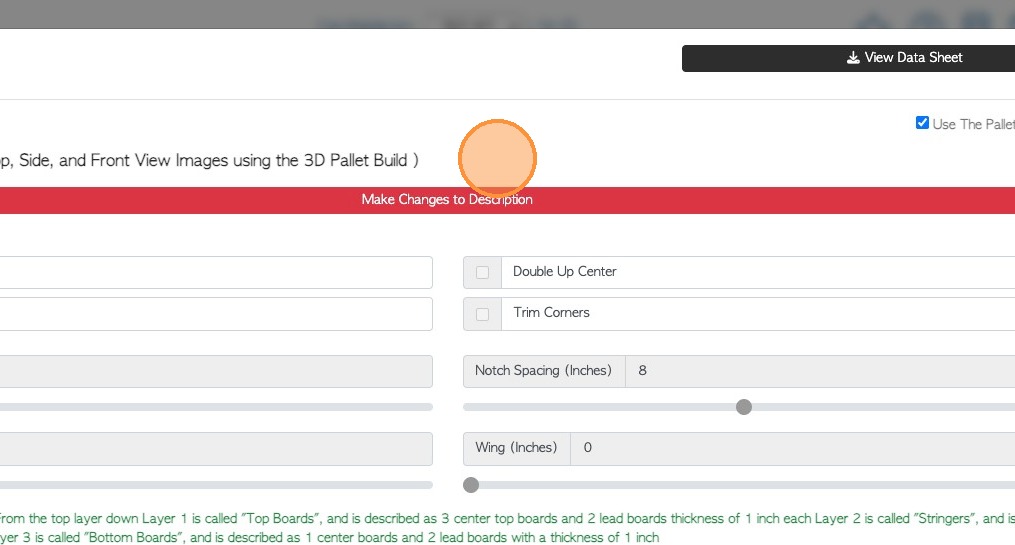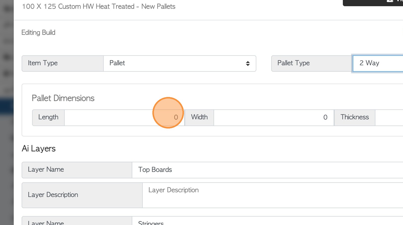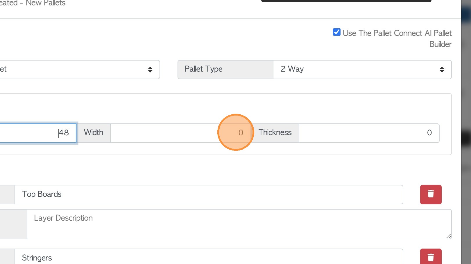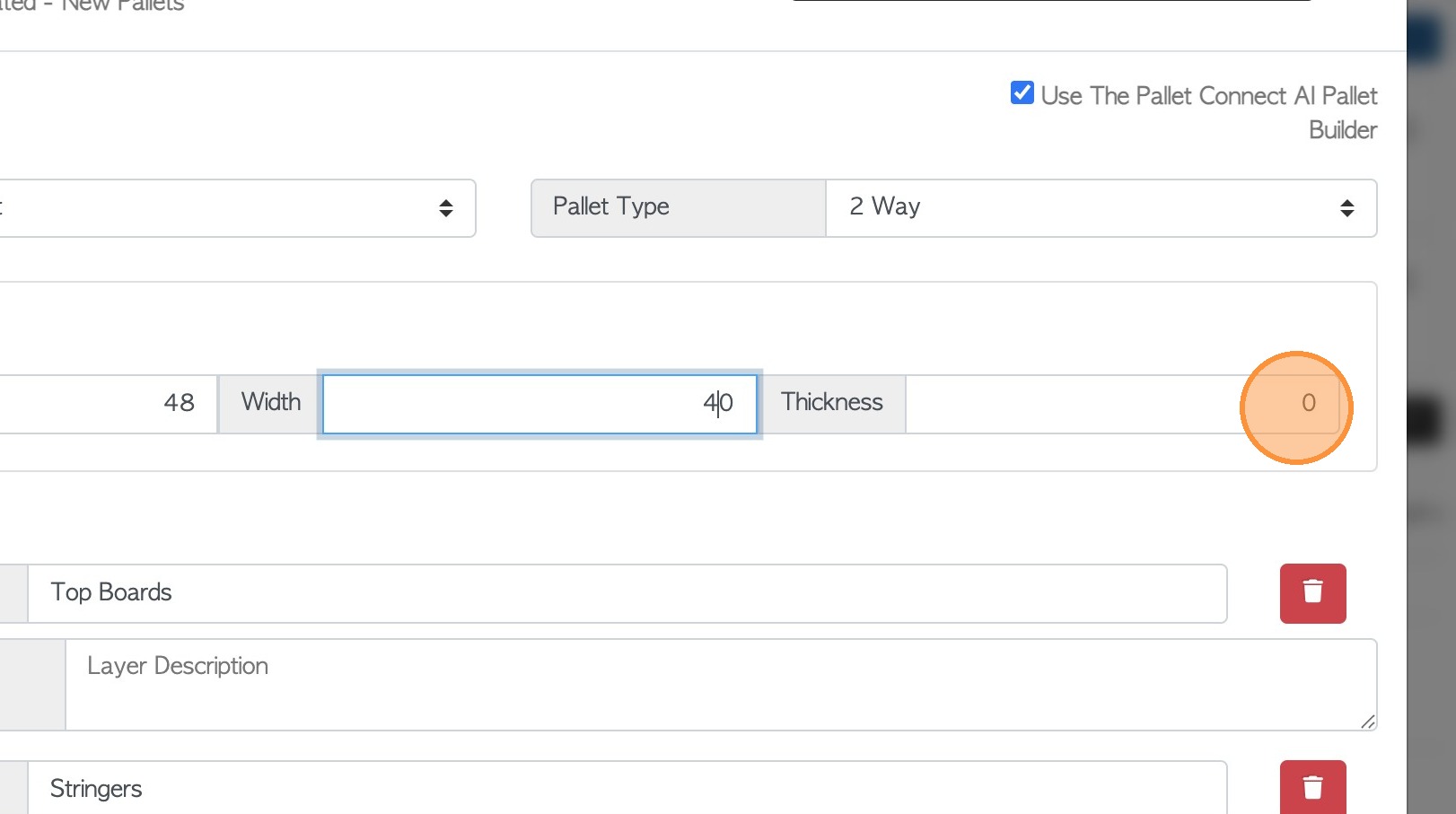 18. Click the "Thickness In Inches" field, to add pallet thickness.