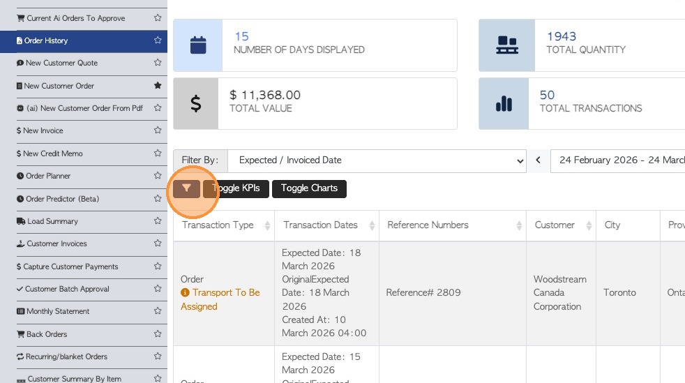 This article explains how to obtain a list of Customer Invoices, using the filters on the Order History page.