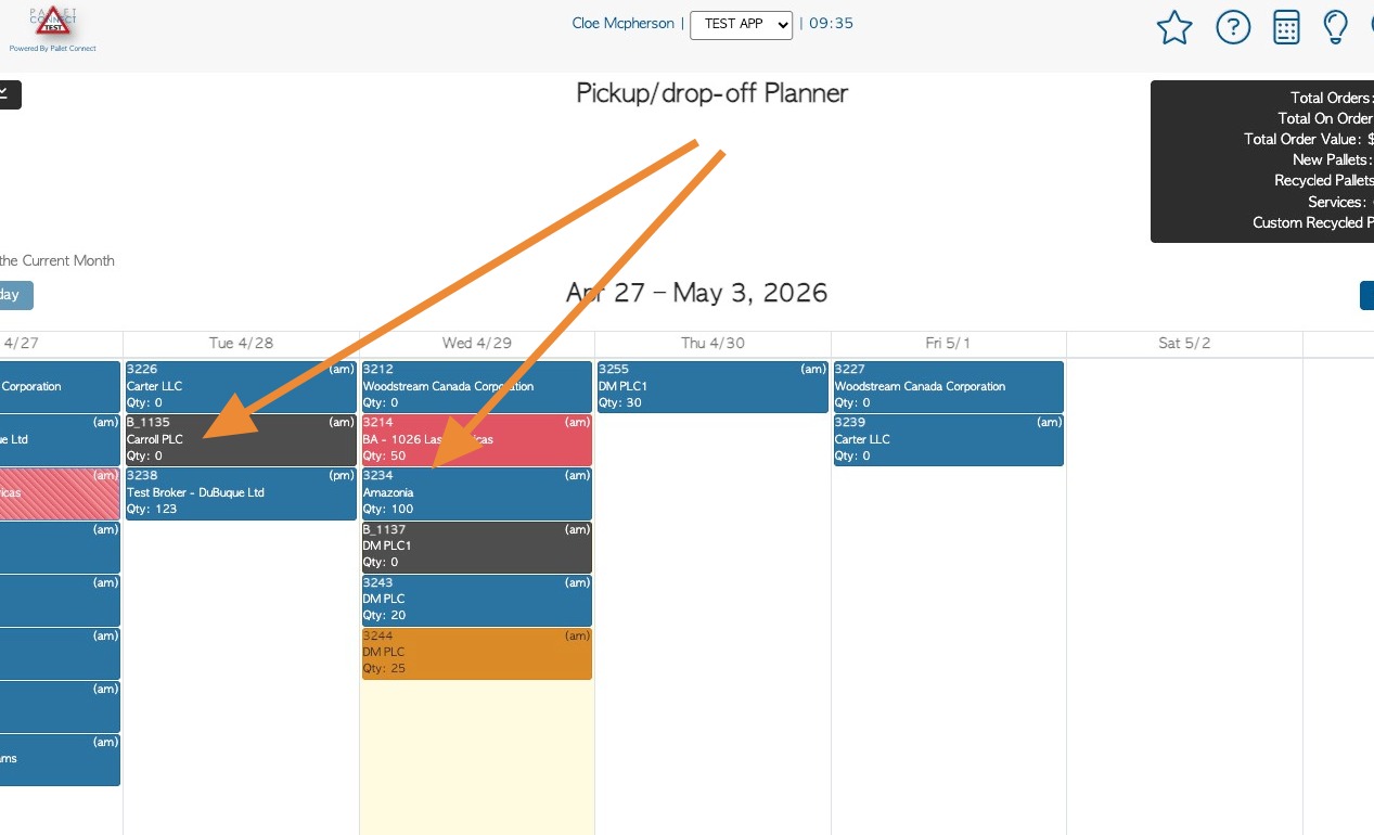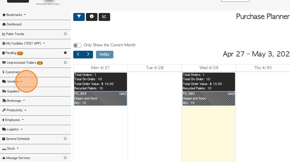 Vendor requests and Customer orders are separated on different planners within Pallet Connect. This article explains how to see a combined view within the system