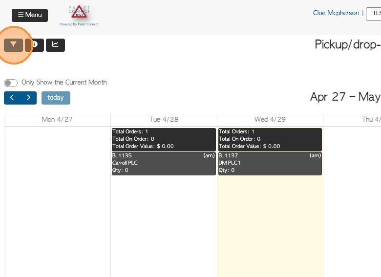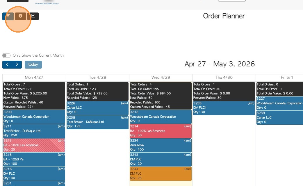 2. From the Order Planner, click the Filter icon in the top left corner.