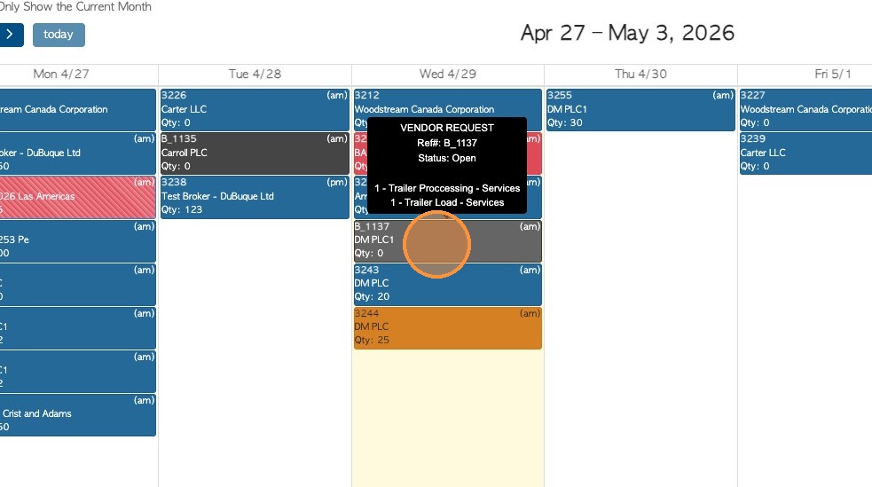 12. The calendar view now shows both Customer Orders and Vendor Requests.