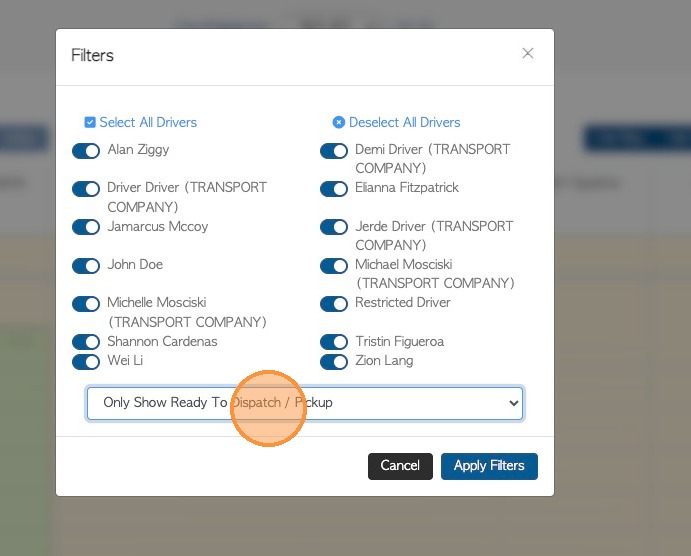 7. Show All or enable the "Show Pending Orders", "Show Pending Pick Ups" "Ready to Dispatch or "Dispatched" filters.