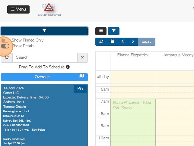 10. Pin an order to the sidebar for easy access. This feature allows for filtering and helps to organize the list of unscheduled jobs.