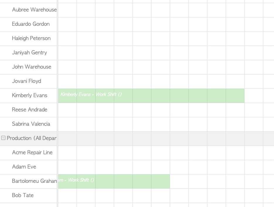 6. On the left side of the schedule is a list of all employees and users that are scheduled in Pallet Connect. These are Drivers, Forklift Drivers, Production Machines and Production Employees.