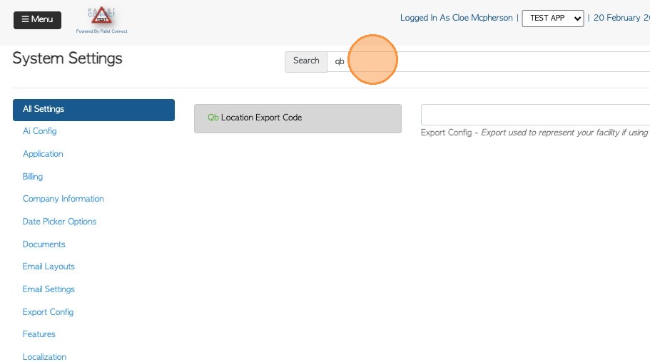 2. In order to match the location name in Quickbooks and Pallet Connect, the user must do the following steps: