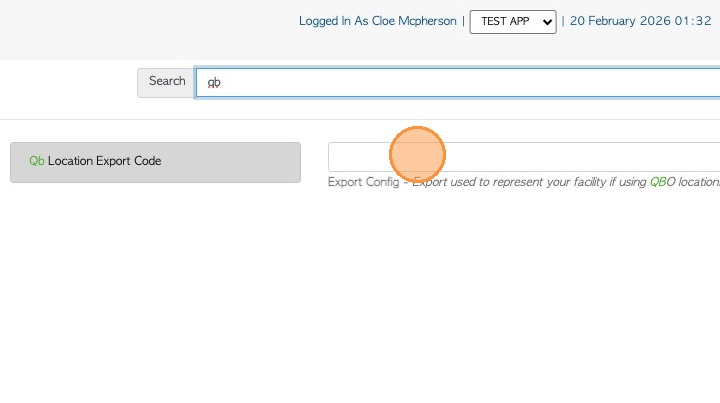 2. Type 'QB LOCATION EXPORT CODE' in the search tab or go to Export Config.