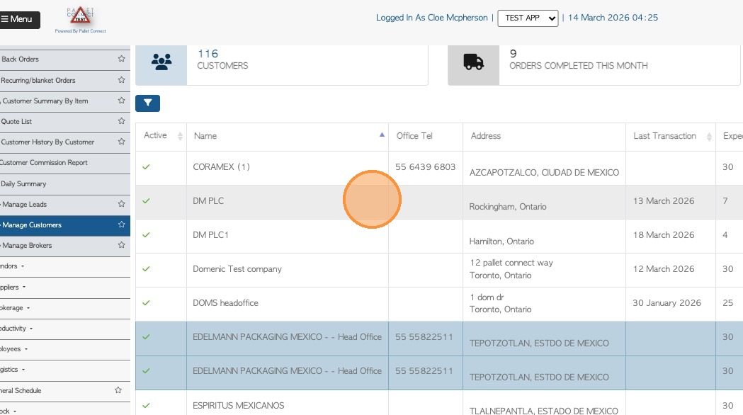 2. Look up the Customer name using the global search or by clicking on the company from the Manage Customers page.