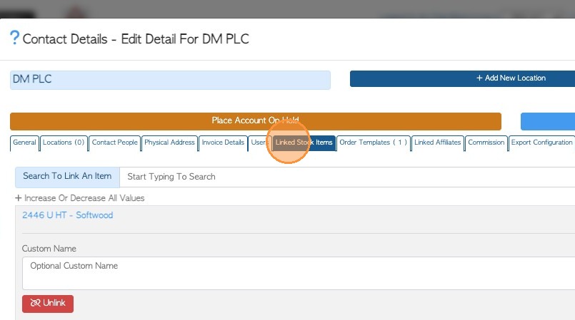4. Click the "Linked Stock Items" tab. This will show all the linked stock items currently attached to the profile. Find the stock where the comment needs to be added or edited.