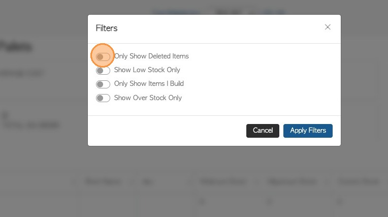 7. Toggle on "Only Show Deleted Items" and click Apply Filters to save.