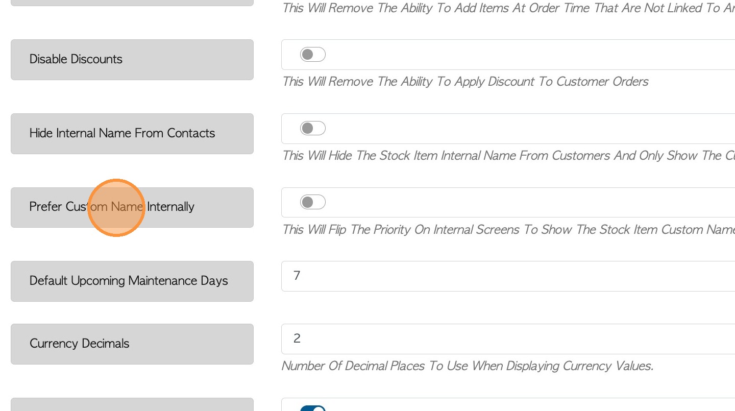 1. The "Prefer Custom Name Internally" setting controls how names are shown on internal documents like load sheets. Custom names are used to input the name the Customer uses for a item, if it differs from the internal name.