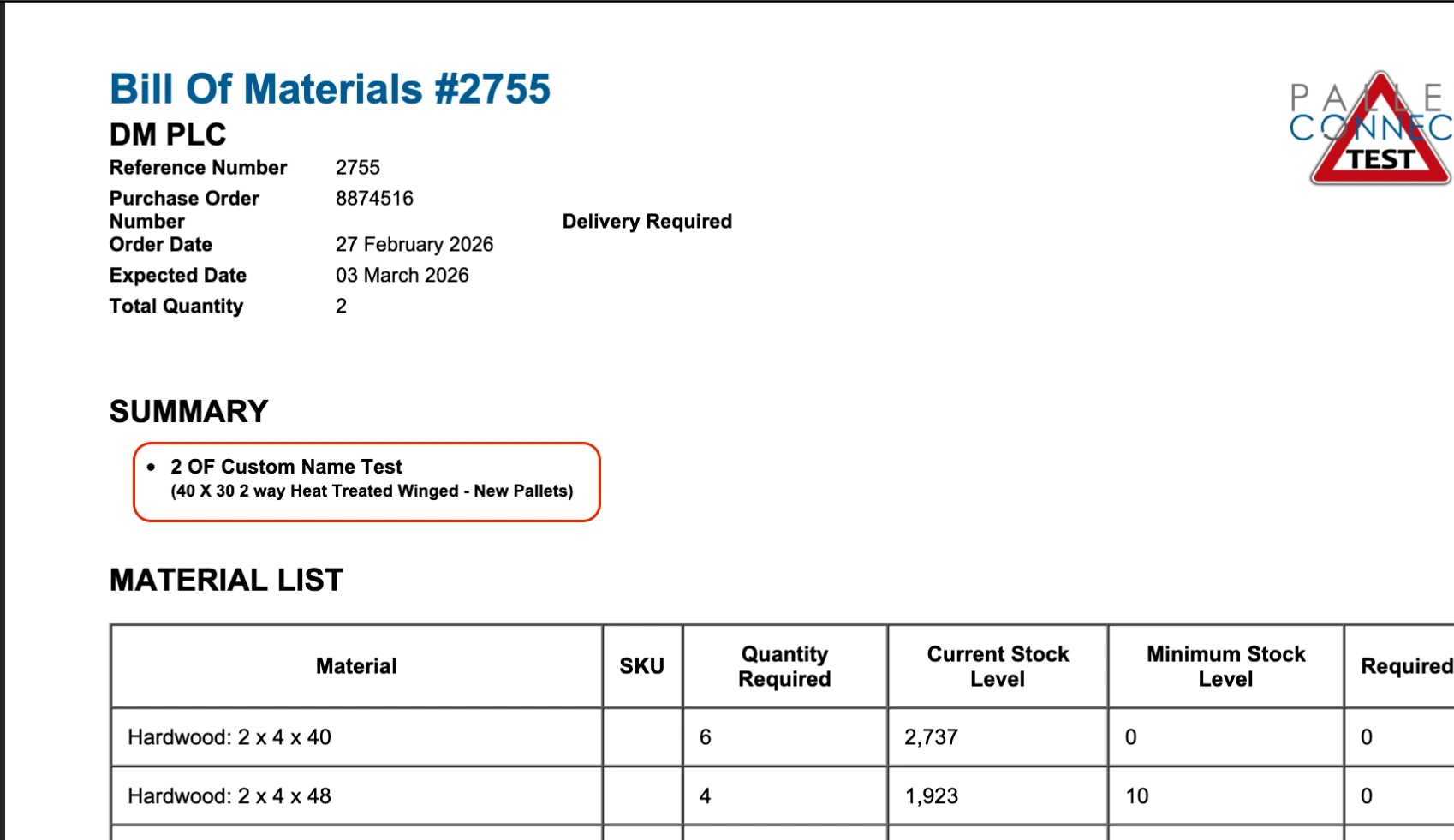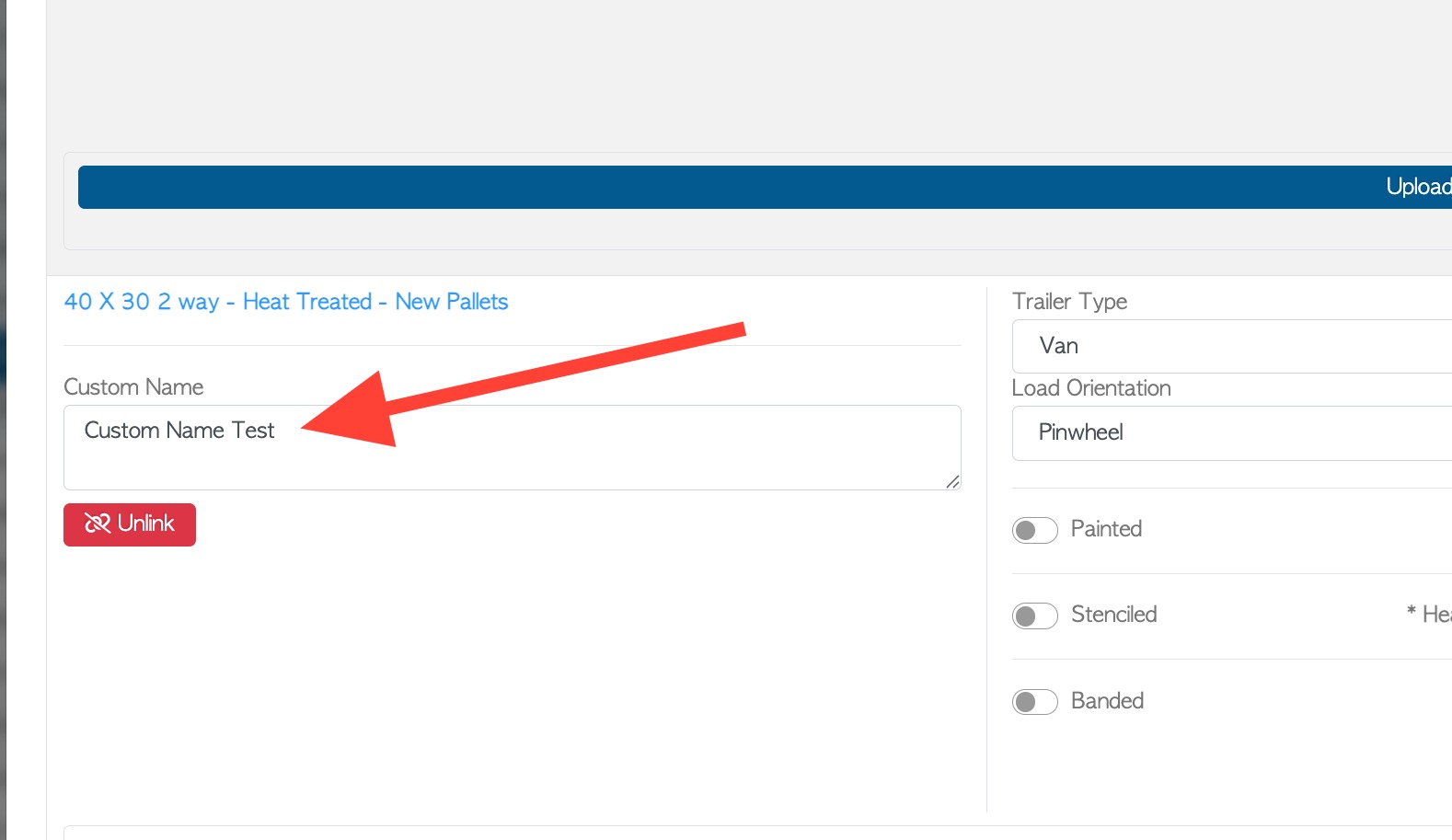 Enter a custom name for the stock. Once this is saved, this name will appear on internal documents, such as the Bill of Materials (BOM) and load sheets.