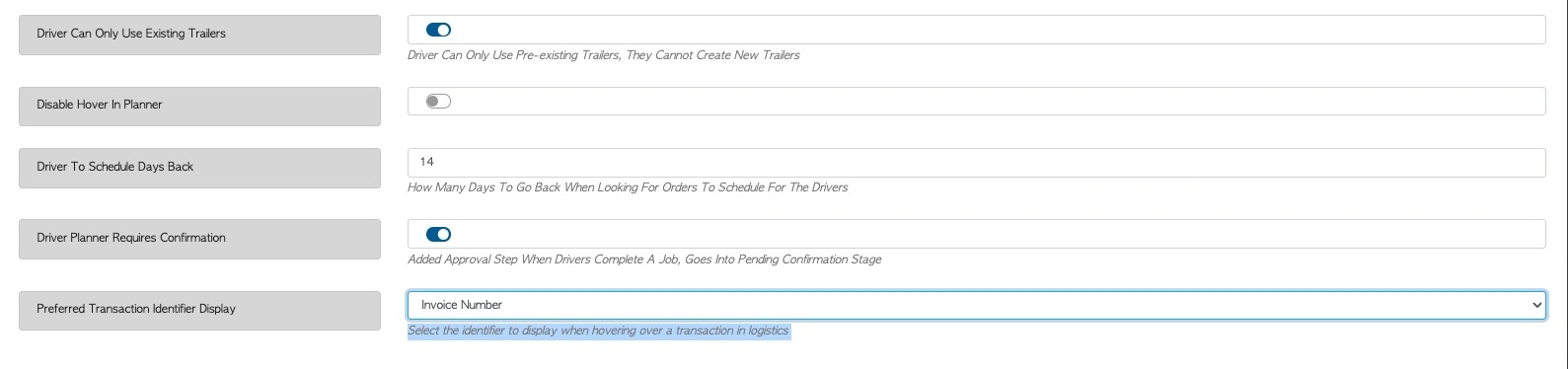 4. Driver Can Only Use Existing Trailers – toggle on/off